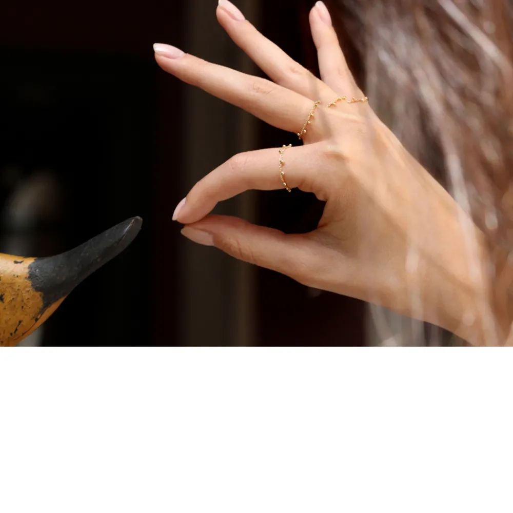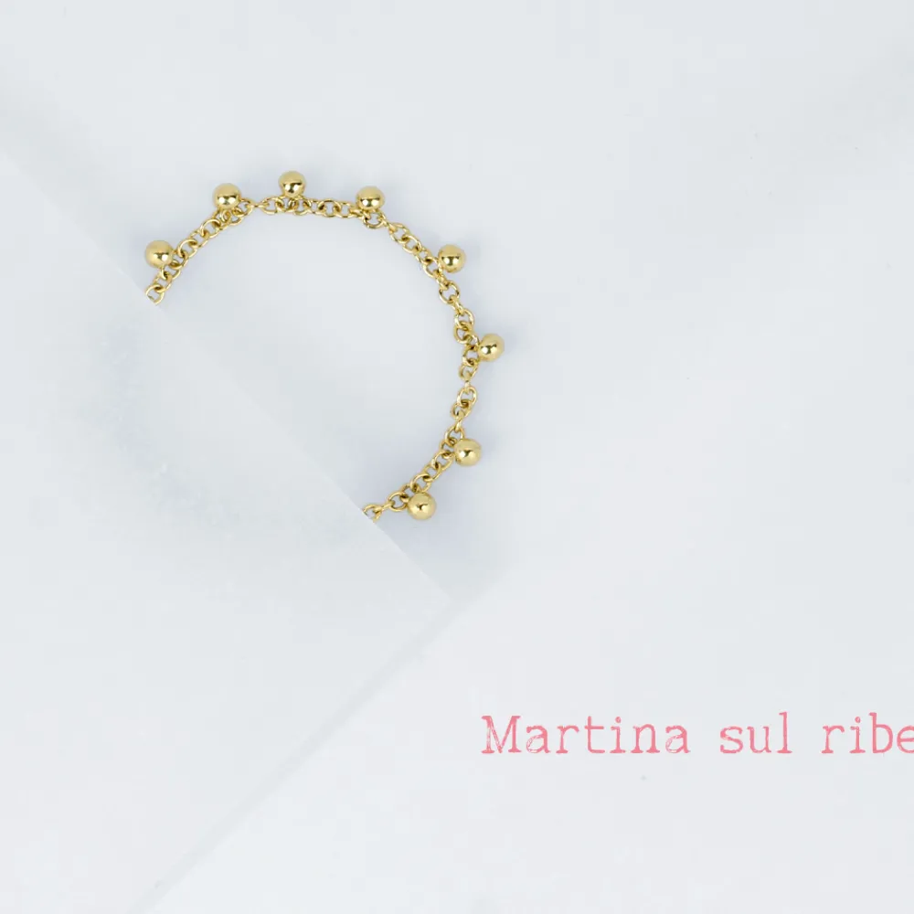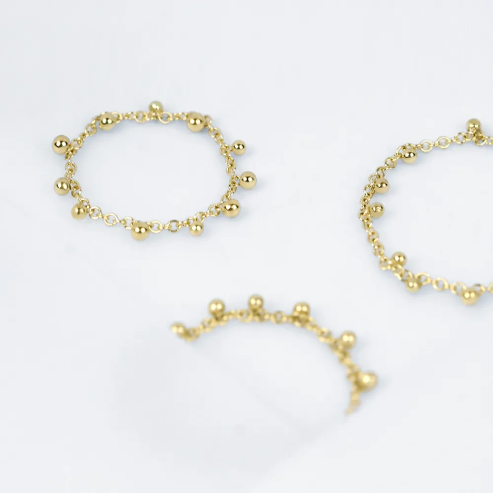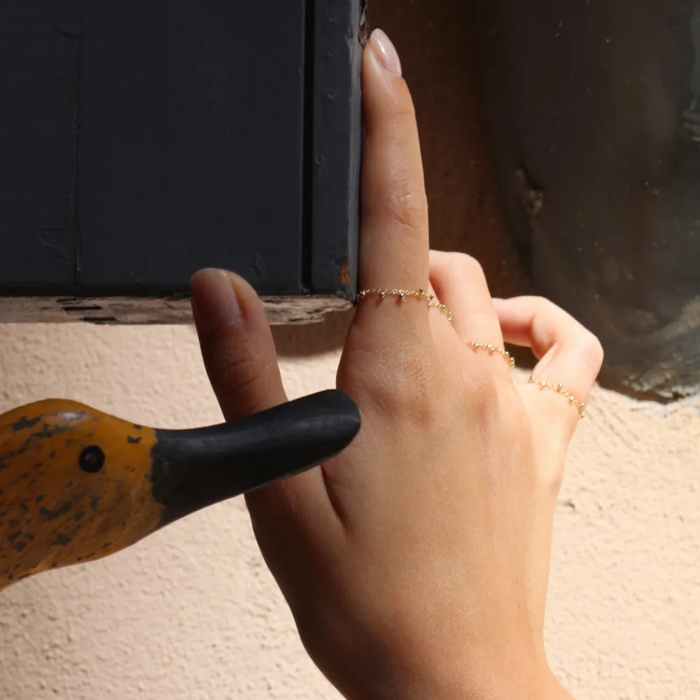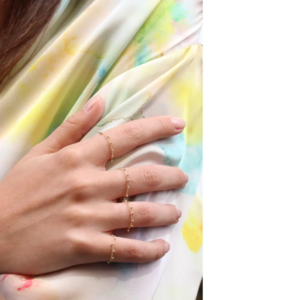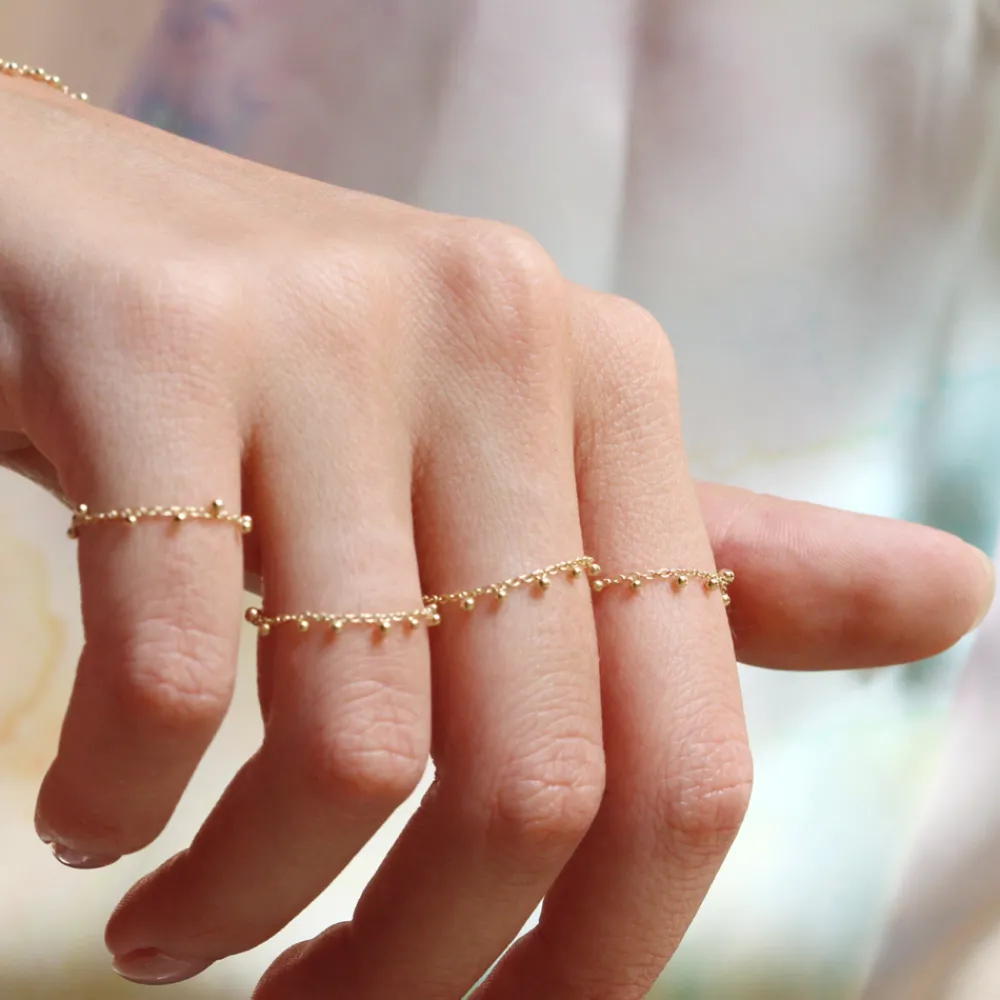 Extra-thin chain stacking ring with mini irregular gold-currants.