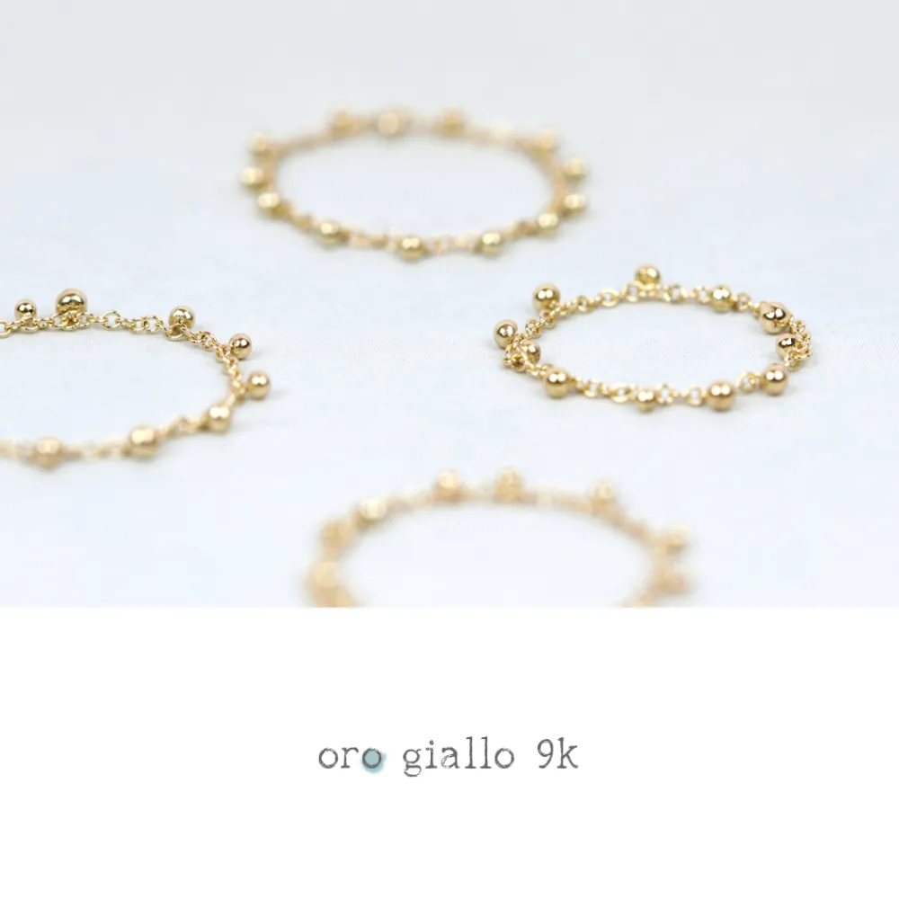Extra-thin chain stacking ring with mini irregular gold-currants. Entirely handmade in 9k yellow gold. Every ring is…