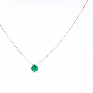 9k yellow gold extra dainty necklace handmade with sliding faceted drop of green quartz (about 7 mm high).