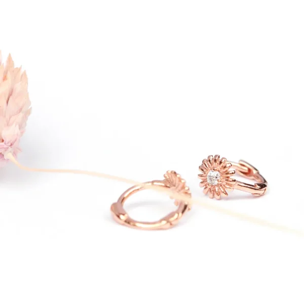 Pair of extra-small huggie hoop earrings, handcrafted in 925 pink silver and white cubic zirconia.
