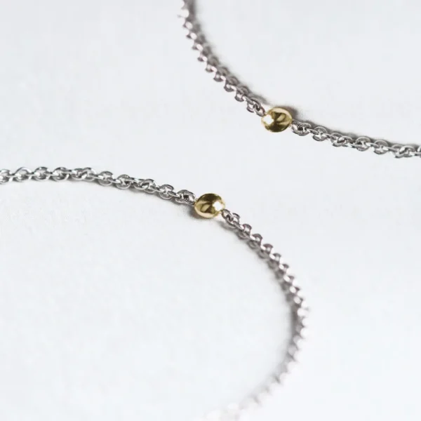 Purchasing “Cha Cha”, you will receive a digital coupon to weld a bracelet (or a pair of bracelets) handmade of 925 sterling silver dainty rolò chain with one 9k yellow gold bead.
