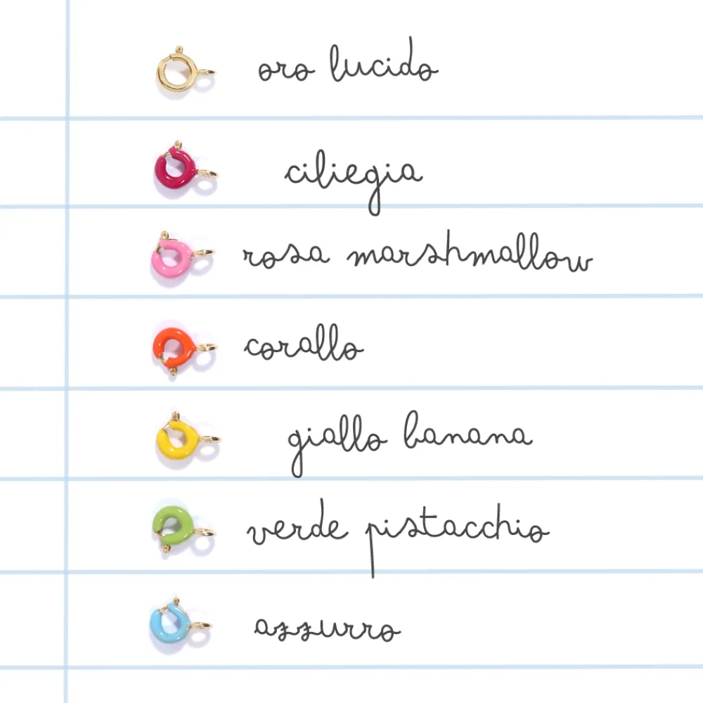 Choose the color of the spring clasp: polished gold or coated with icing (cherry | marshmallow pink | coral | banana yellow | pistachio green | light-blue).