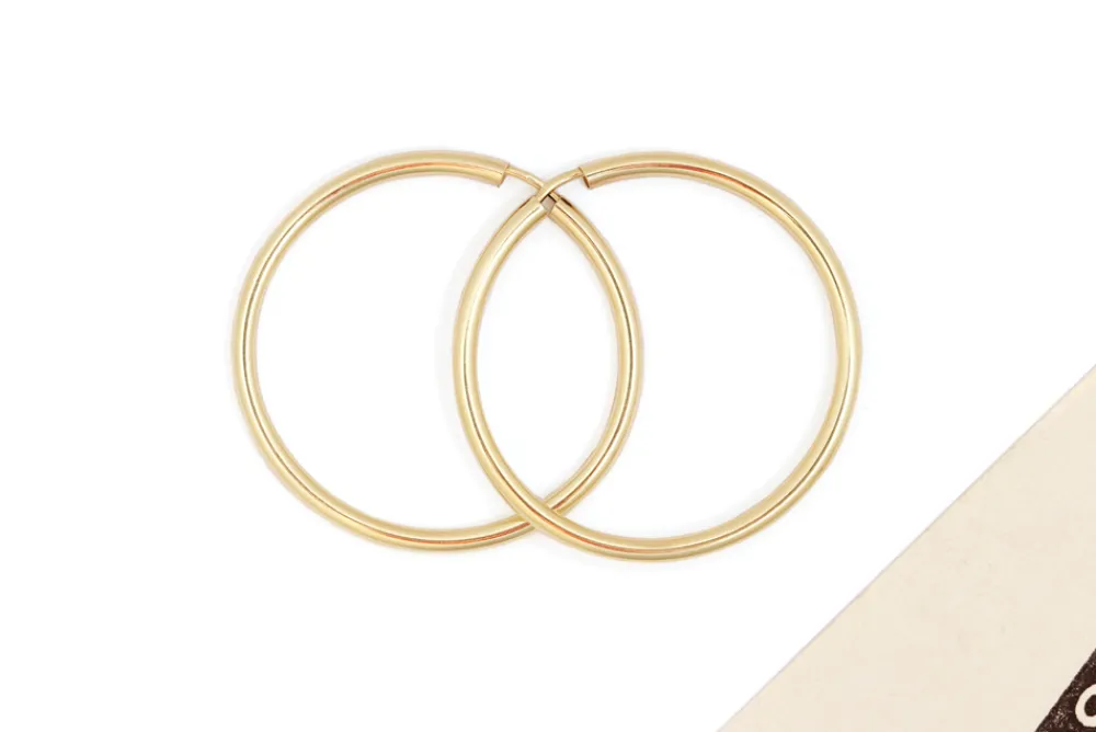 Very simple creole circle hoop earrings (2,5 mm thick), handmade in polished 9k yellow gold. Outer diameter 50 mm.