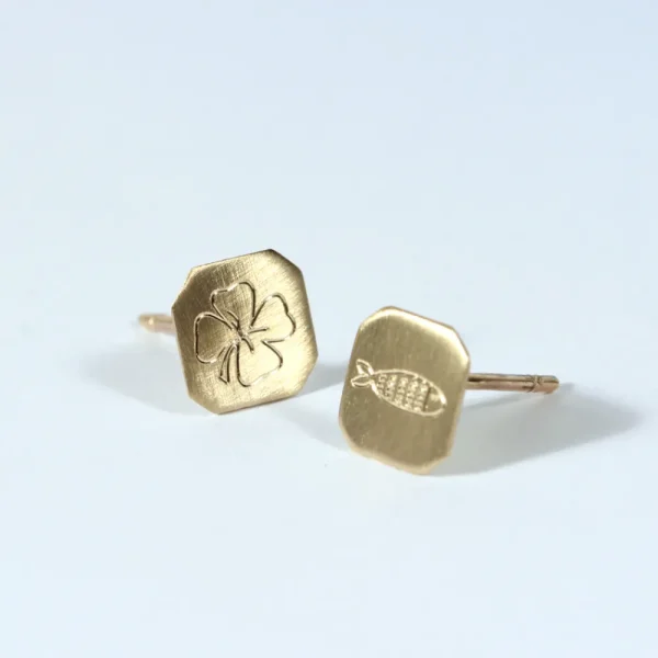 You can customize your earring with a simple drawing/symbol or your initials / letters / numbers (about 2 figures in each earring).