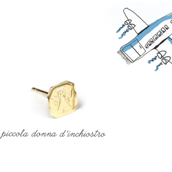 Small squarish stud earring in 9k yellow gold (about 8 x 8 mm). Polished or wabi sabi (vintage).