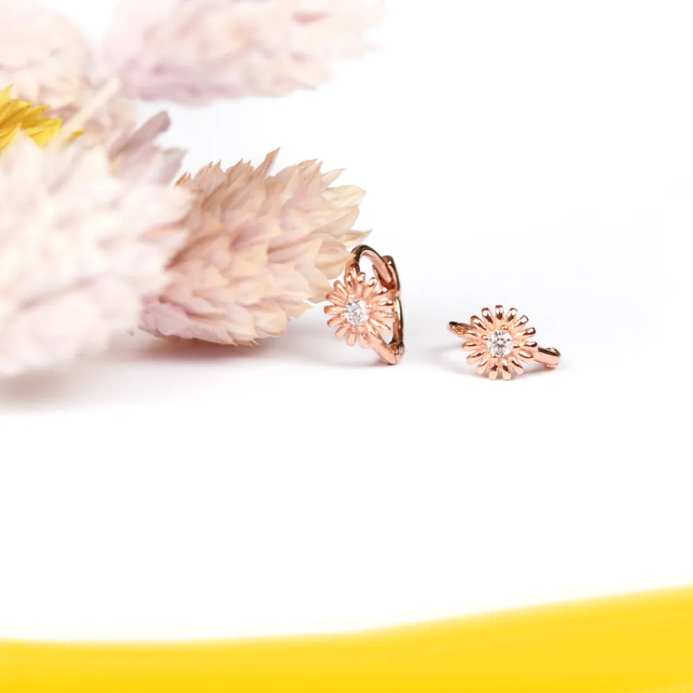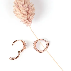 Pair of extra-small huggie hoop earrings, handcrafted in 925 pink silver and white cubic zirconia.